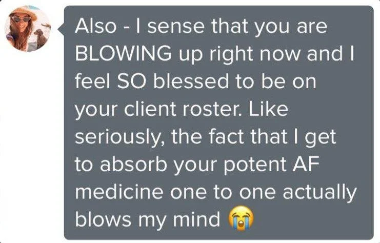 This means if I'm in an energetic low, I'll wait to reply until I raise my frequency to make sure I only rub off elevated energy on my VIP clients.