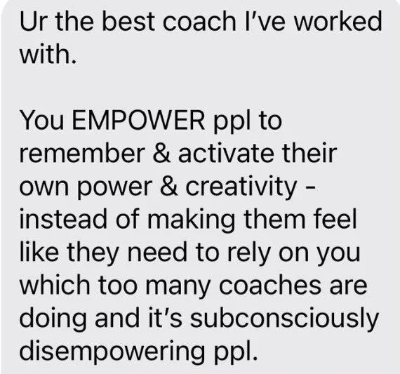 Unlimited text support during my aligned business hours (I’m all about staying in my energy, so I only respond when I’m at my best).